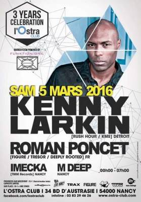 L’Ostra Club fête ses 3 ans le samedi 5 mars et à cette occasion nous avons l’immense honneur de recevoir le grand KENNY LARKIN et ROMAN PONCET du label Figure.