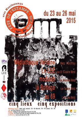 A l’occasion de la 3ème fête de l’estampe BOTTEGA, Le LEE, Médiathèque Verlaine, MODULAB, et Au 69 vous proposent cinq lieux cinq expositions.