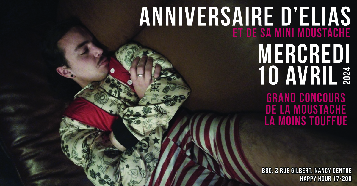 Et pour célébrer cette transformation, nous avons décidé de lui réserver une soirée spéciale ! Venez avec votre plus belle moustachette pour rejoindre la fête. À chaque nouvelle moustachette qui débarque, Elias s'engage à boire un shooter ! Et bien sûr, si vous n'avez pas la chance d'avoir des poils à cet endroit, un bon coup de stylo fera l'affaire. ?️??