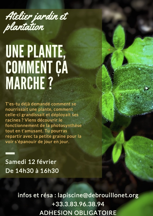 Nous vous attendons à 14h30 à La Piscine pour apprendre tout en vous amusant ! Vous aurez également l'occasion de planter votre petite graine et de l'amener chez vous pour voir la magie de la nature se produire !