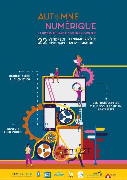 Cette année, nous organisons la seconde édition d’Automne Numérique le vendredi 22 Novembre 2019 à la Centrale Supélec à Metz (57), de 8:30 à 16:30.