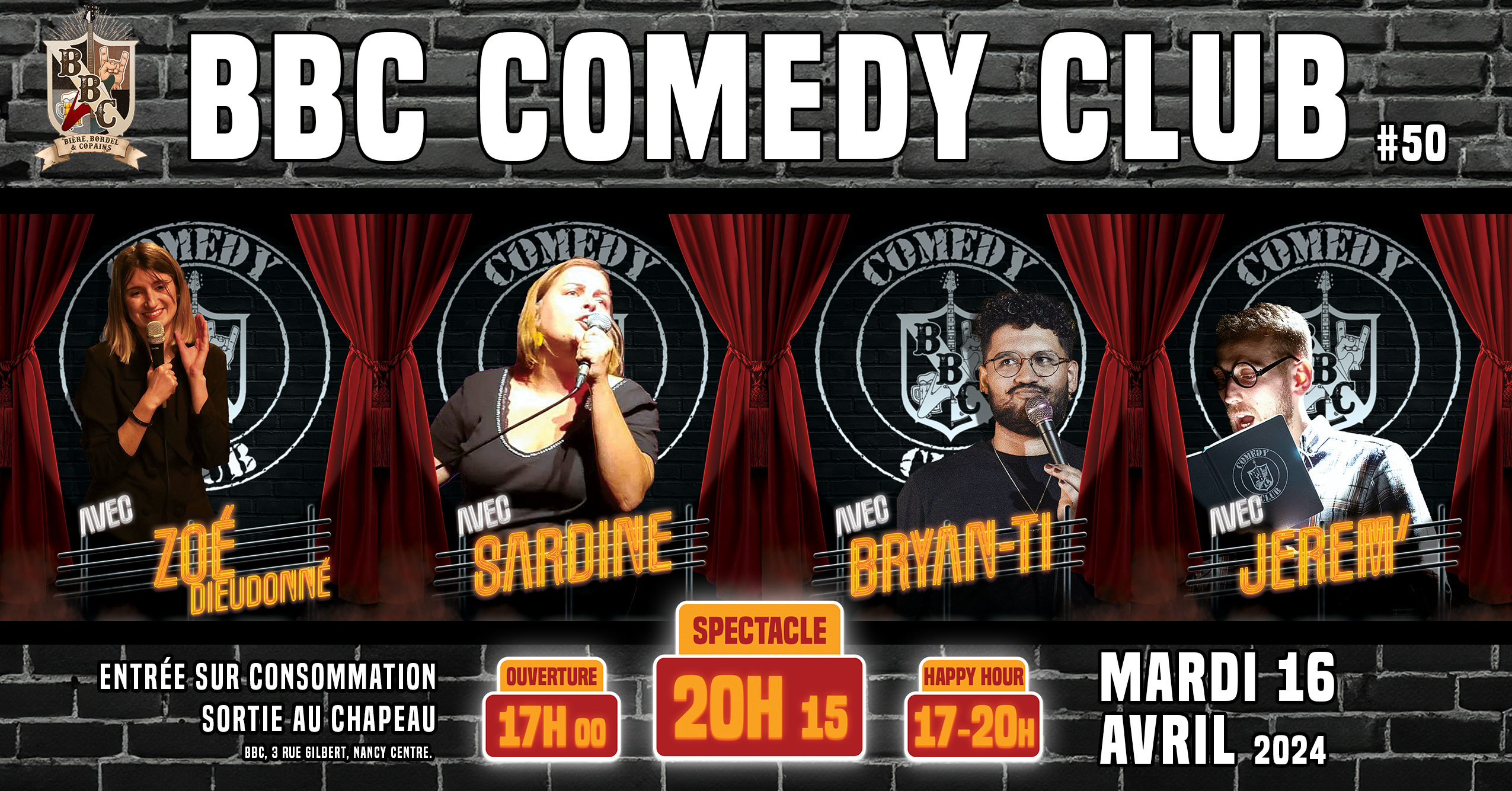 ? Invitez vos amis, marquez la date dans vos agendas, et venez célébrer cette édition spéciale du BBC Comedy Club. Ça va être drôle à en pleurer ! ??
