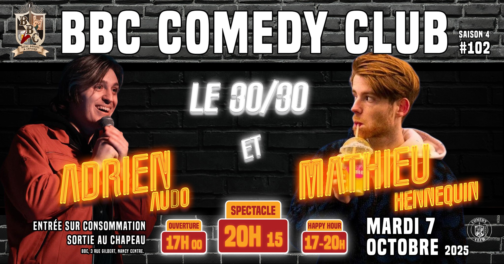 ✨ Au programme : un 30/30 avec Mathieu Hennequin et Adrien Audo. Deux humoristes from Paris, deux univers, 30 minutes chacun pour vous offrir une heure de stand-up qui va faire vibrer le BBC !