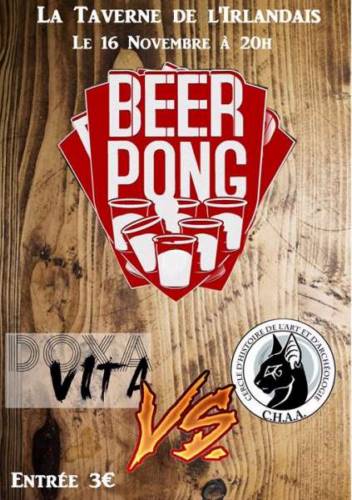 Les associations DOXA VITA et CHAA (Cercle d’Histoire de l’Art et Archéologie) s’affronteront lors d’un bière pong organisé à la Taverne de l’Irlandais le 16 novembre à partir de 20h !