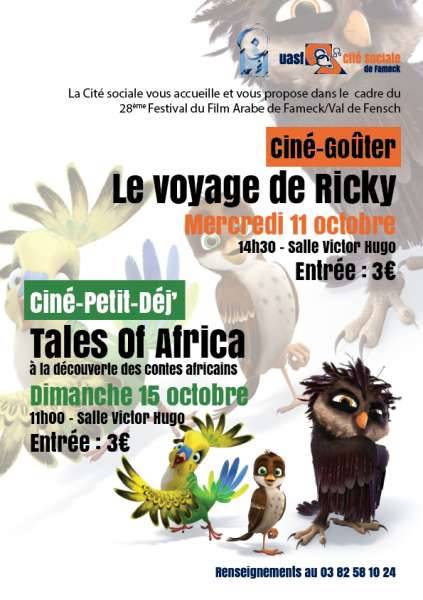 La Cité sociale de Fameck vous propose, dans le cadre du 28ème Festival du Film Arabe de Fameck / Val de Fensch, un ciné-goûté avec la projection du dessin animé : "Le voyage de Ricky".