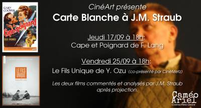 CinéArt présente une Carte Blanche à J.M. Straub avec "Le Fils Unique de Y. Ozu".