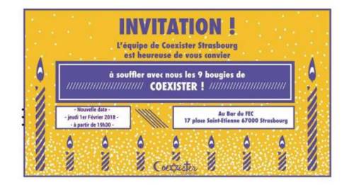 9 ans plus tard (ou presque), on le fête à Strasbourg avec l’équipe locale! On vous attend pour souffler cette neuvième bougie, que ce soit la quatorzième, neuvième ou première fois que vous rencontrez Coexister!