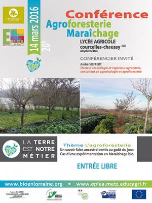 Animée par André Sieffert, consultant en agroécologie et agroforesterie de l’INRA, la conférence se déroulera en soirée dans l’amphithéâtre de l’établissement d’enseignement agricole de Courcelles-Chaussy.
