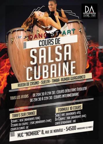 > Un cours salsa avancé pourra être positionné le mardi de 20h30 à 21h30 en fonction du nombre d’élèves : deux ans de pratiques en cubaine minimum en maîtrisant les bases (appuis, postures, style, passes couple niveaux 1 et 2, rueda de casino passes niv 1 et 2)