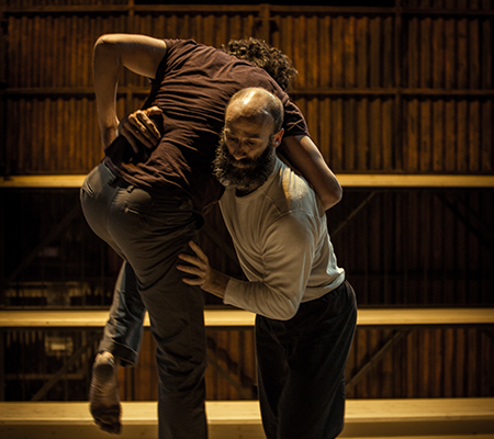 À mi-chemin entre deux genres, le cirque et la danse, Jean-Baptiste André et Dimitri Jourde ont créé un duo fascinant. Tour à tour rugueux ou élégant, puissant ou délicat, ce corps à corps et ses mouvements - avec ses élans, ses ruptures et ses équilibres précaires - déploie sa courbe vertigineuse entre le théâtre et la beauté du geste.