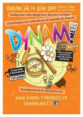 L’association Dam’s Paradize en collaboration avec la ville de Metz et l’ARSla (Association de Recherche sur la SLA) organise la 4e édition de DYNAM’METZ une chasse au trésor à vélo à travers toute la ville le Dimanche 14 juin 2015.