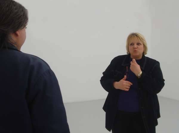 Jocelyne Wilhelm propose aux publics sourds, malentendants et entendants une visite guidée en Langue des Signes Française des expositions du Frac Lorraine ?The Making of Husbands : Christina Ramberg en Dialogue? & ?Degrés Est : Emma Perrochon?