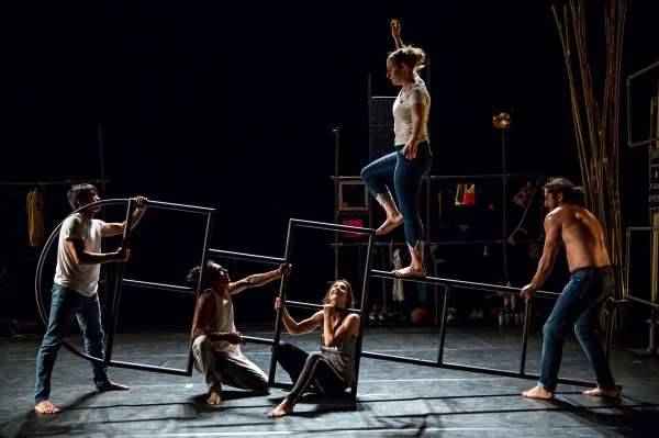 Au plateau, cinq acrobates et un musicien. A leurs côtés,une marelle métallique, objet populaire, support de règles strictes,mais faites pour être contournées. Pour jouer, il faut s’engager physiquement, être réactif. La marelle permet de s’arracher à la lourdeur d’un corps en transformation, se dépasser et trouver son propre langage gestuel. Leurs performances, entre acrobaties et danses, parlent de la jeunesse et plus particulièrement de l’adolescence.