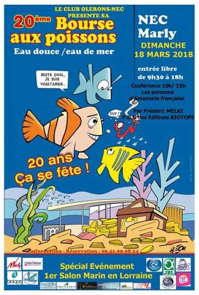 Bourse aux poissons (eau douce et eau salée), conférence de Frédéric Melki, PDG des éditions Biotope «Les poissons d’amazone française», etc.Restauration :