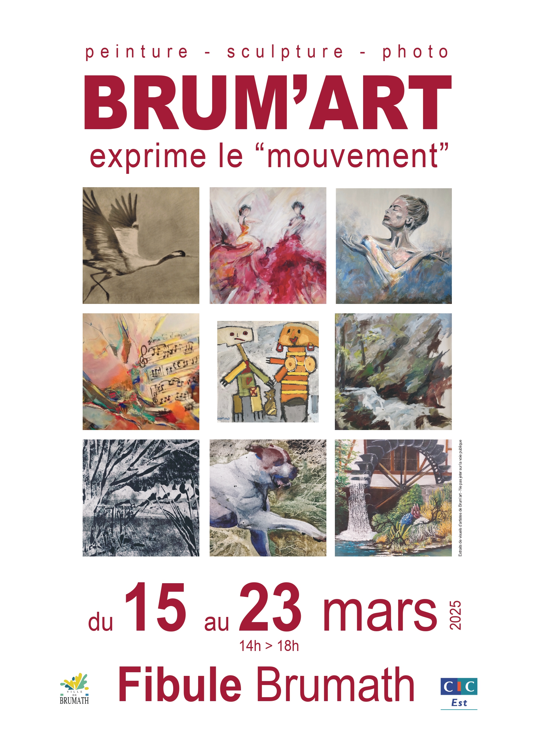 Une très jolie exposition aura lieu prochainement à l’Espace La Fibule à Brumath. Elle a pour titre « mouvement » et elle sera organisée par l’association Brumathoise BRUM’ART qui regroupe autour de son Président Daniel Jung 17 artistes, tous habitant Brumath et ses proches villages.