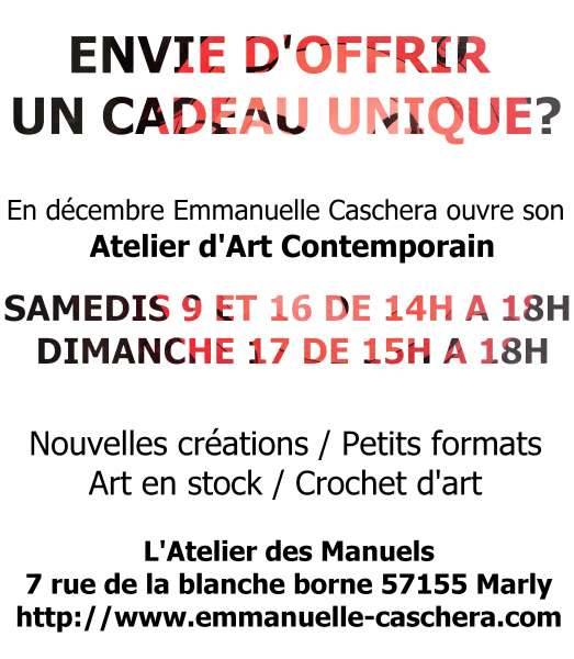 Emmanuelle Caschera vous informe de l’ouverture de son Atelier d’Art Contemporain pour Noël.