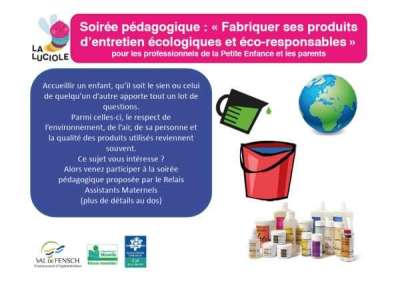 Accueillir un enfant, qu’il soit le sien ou celui de quelqu’un d’autre apporte tout un lot de questions. Parmi celles-ci, le respect de l’environnement, de l’air, de sa personne et la qualité des produits utilisés reviennent souvent. Ce sujet vous intéresse - Alors venez participer à la soirée pédagogique proposée par le Relais Assistants Maternels La Luciole.