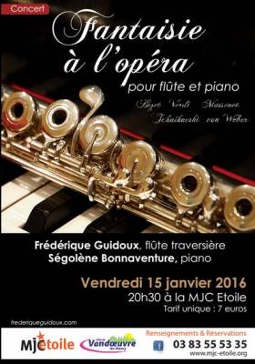 Fantaisie sur la Traviata de Giuseppe Verdi / E Krakamp et J Briccialdi Meditation de Thaîs de Massenet arrangée par Paul Taffanel Variations brillantes sur un thème de la Norma de Vincenzo Bellini / Cottignies Fantaisie sur le Freischütz Carl Maria von Weber / P Taffanel Air de Lensky tiré d’Eugène Onegine de Piotr Illitch Tschaikowsky Fantaisie brillante sur Carmen de Georges Bizet / François Borne