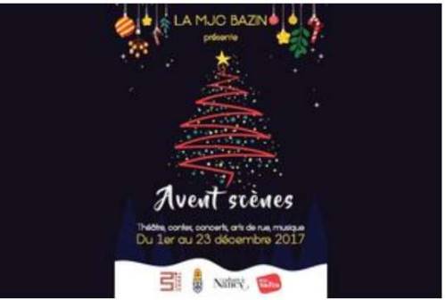 Avent Scènes, c’est un spectacle chaque jeudi, vendredi et samedi du 01 au 23 décembre à 18h30, pour tous les publics, pour tous les âges à la MJC Bazin.