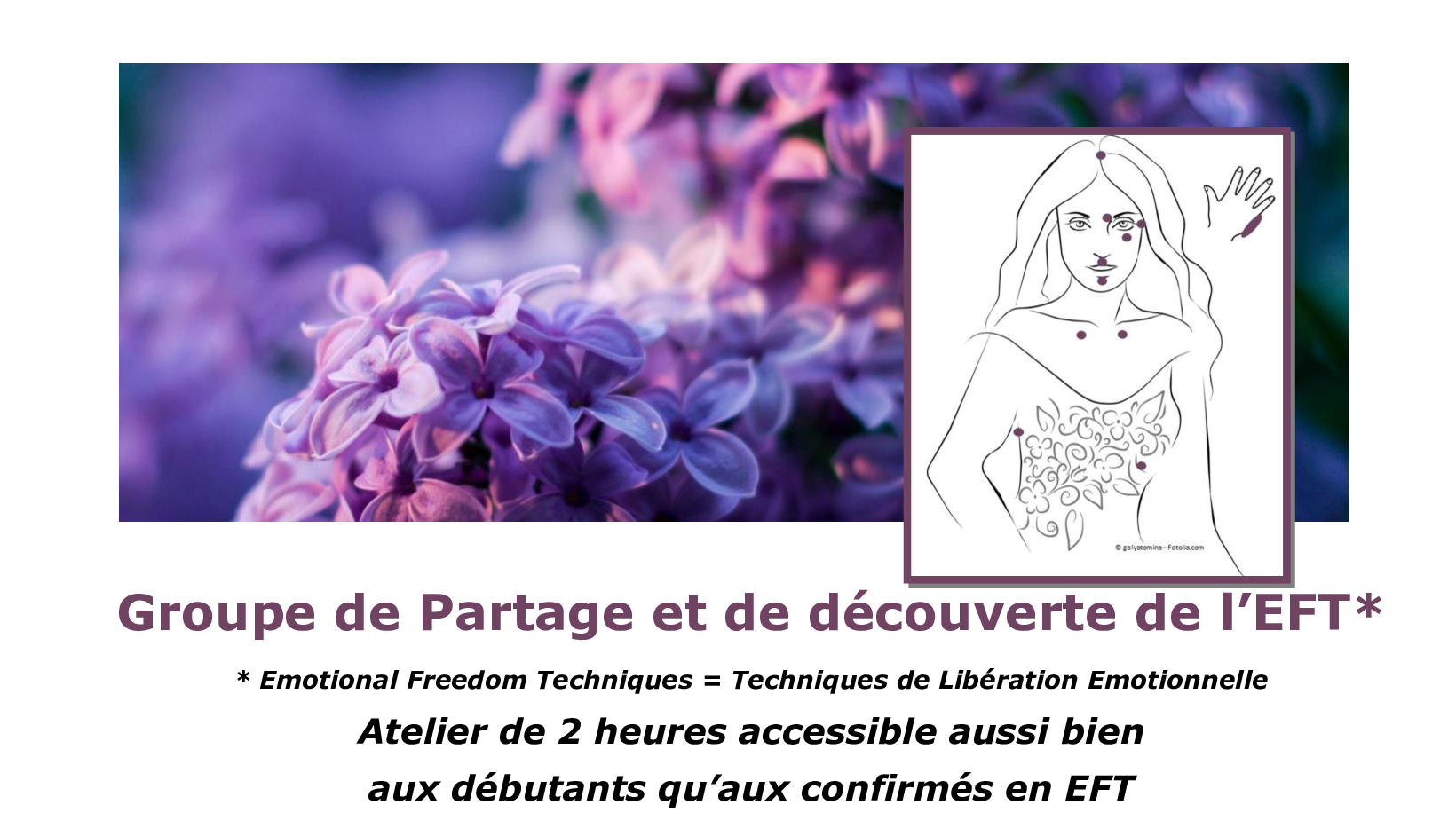 Ces ateliers de 2 heures sont accessibles aussi bien aux débutants qu’aux confirmés. Après une rapide présentation de la technique, nous pratiquerons directement. Ces groupes de partage vous permettront de découvrir l’EFT ou de pratiquer régulièrement une technique déjà apprise.