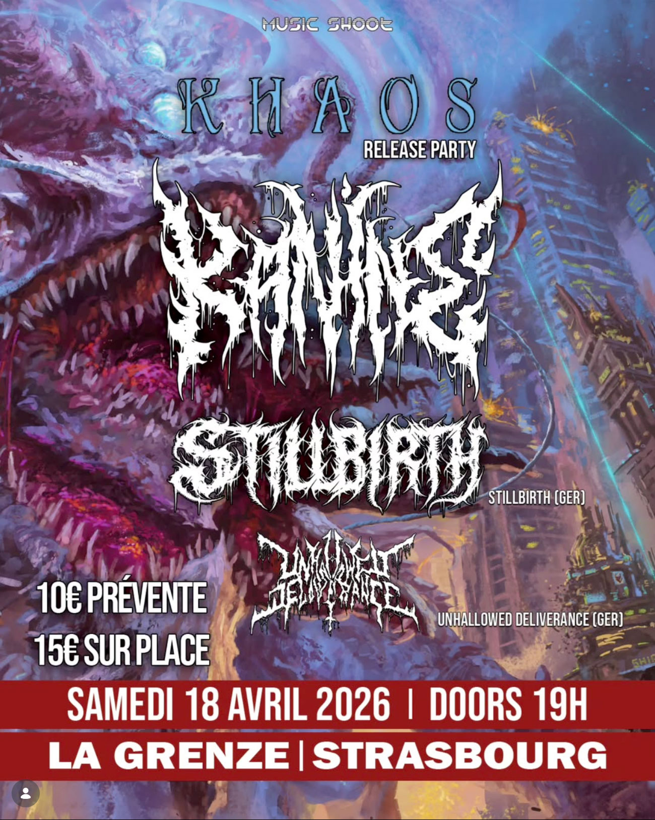 Kanine : KHAOS (release party) + Stillbirth + Unhallowed Delivrerance x Music Shoot à La Grenze