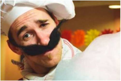 Véritable artiste, sculpteur de barbe à papa, il distribue avec son sourire moustachu ses créations champignonesques et florales aux couleurs de l’arc en ciel.