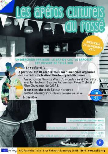 - Projection du film « Le divan du monde » suivi d’un débat avec les docteurs Georges Federmann, Pierre Tryleski et Alice Chavannes du CASAS.