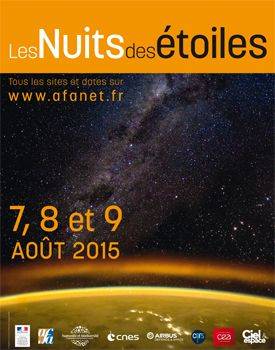 Les Nuits des étoiles 2015 auront eu lieu les 7, 8 et 9 août 2015. Partout en France et dans plusieurs pays d’Europe et d’Afrique, des centaines de sites vous ont accueilli à nouveau pour contempler la voûte céleste.