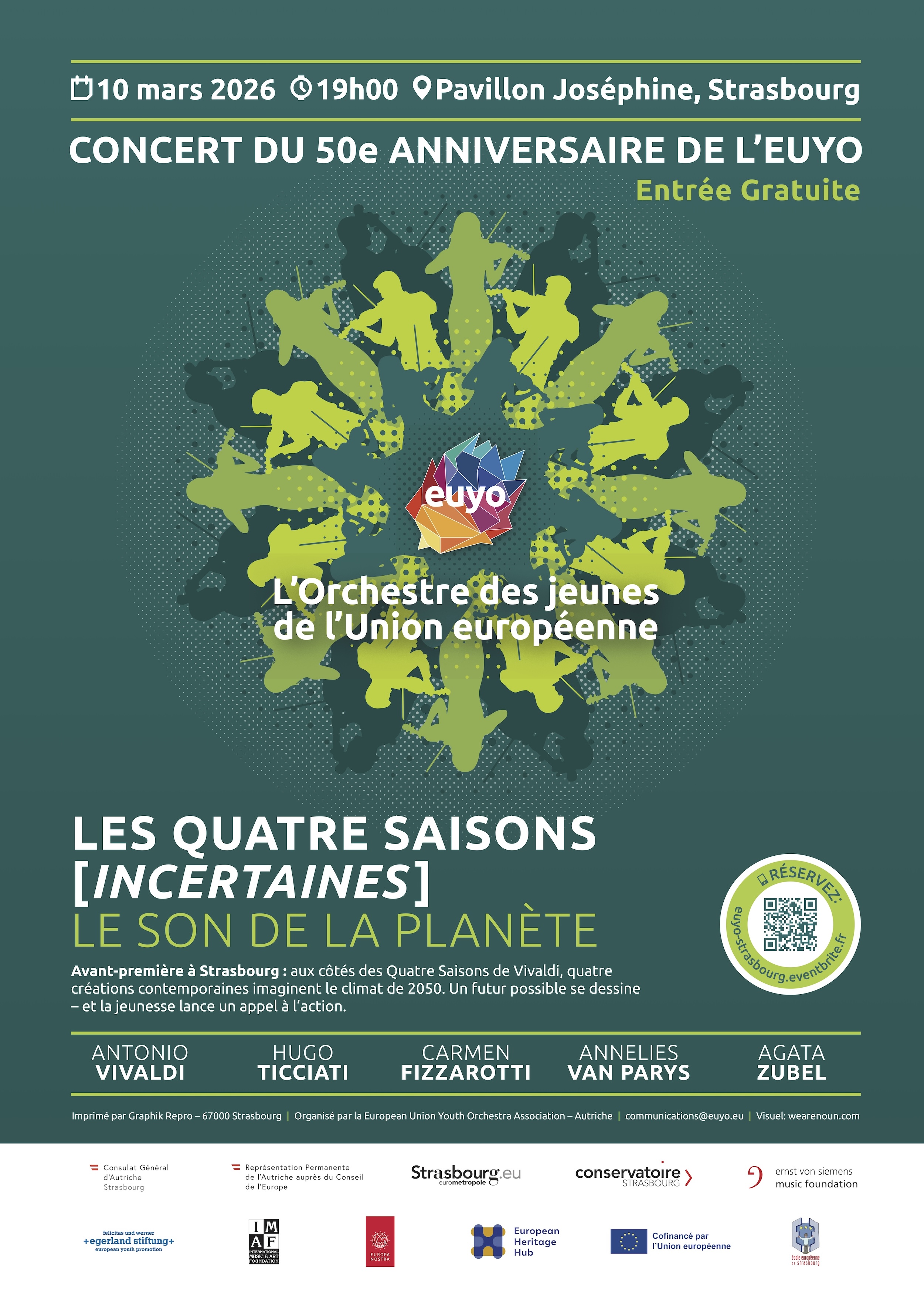Le concert est interprété par l’ensemble à cordes de l’Orchestre des jeunes de l’Union européenne (EUYO), composé des musiciennes et musiciens les plus remarquables de leur génération à travers l’Europe. Ambassadeur culturel de l’UE, l’orchestre célèbre ses 50 ans en 2026.