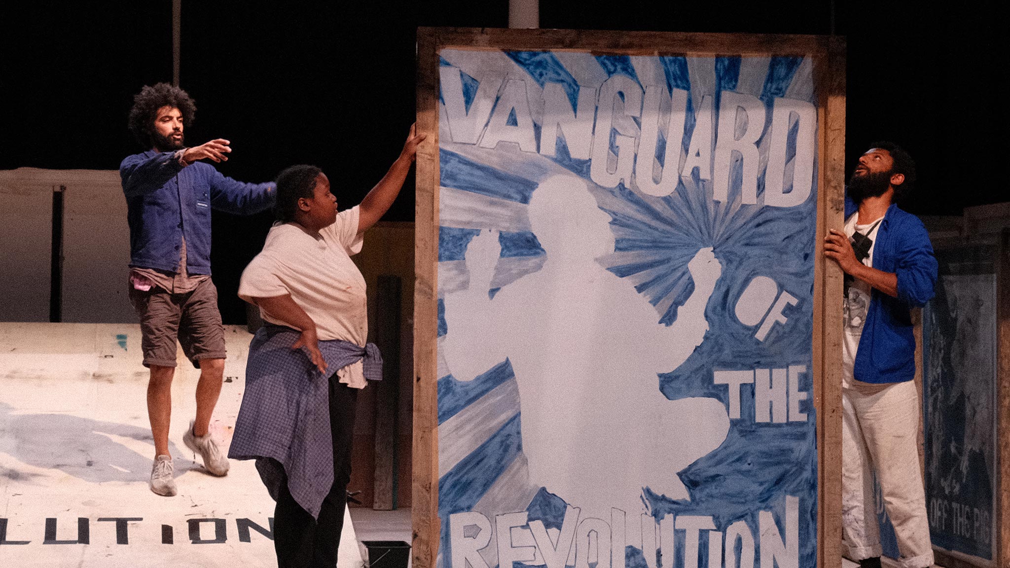Move on over or we’ll move on over you révèle la puissance esthétique, poétique et créative de cette révolte historique : chorégraphies, dessins, photographies, graffs, poèmes, codes vestimentaires etc. Porté par trois acteurs généreux, ce spectacle est à la croisée de la fiction documentaire et du théâtre d’objets. La scène se transforme en atelier de sérigraphie dans lequel un groupe de militants fabrique ses slogans et affiches. Quelle part d’émotion nous traverse quand on entre en résistance ? Comment la poésie et le symbole peuvent-ils renverser les rapports de forces ? À méditer.