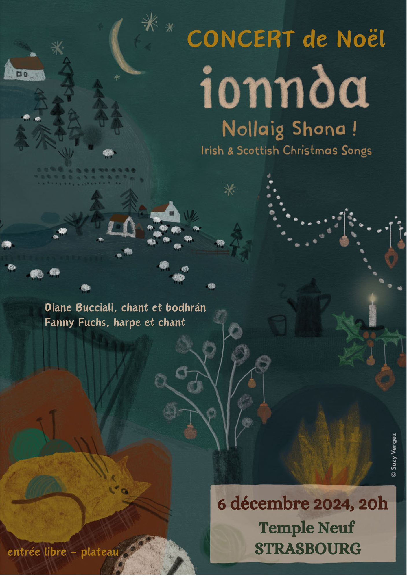 Le duo Ionnda réunit la chanteuse Diane Bucciali et la harpiste Fanny Fuchs. Par leurs voix et leurs instruments celtiques, les musiciennes apporteront au coin des cheminées alsaciennes les airs traditionnels de Noël venus d'Irlande, d'Ecosse et d'Angleterre.