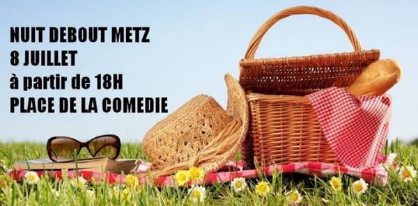 La Place de la Comédie à Metz sera à nouveau occupée ce soir vendredi 8 juillet par diverses animations. Nous vous invitions toutes et tous à venir profiter du soleil d’été où chacun est convié à amener avec lui de quoi manger sur place pour un moment de détente et d’échange.