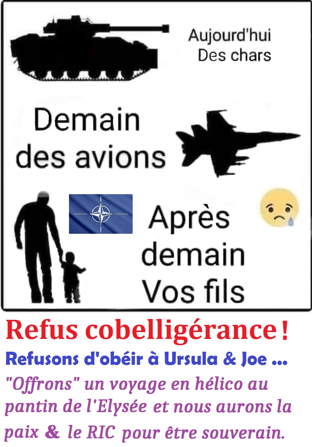 Nous expliciterons l'urgence du départ de Macron ainsi que le refus de la guerre (indirecte) de l'OTAN en Ukraine où notre pays est en cobelligérance ceci sans notre accord.