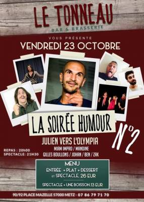 Julien propose une 2ème soirée Humour au Tonneausous forme de dîner-spectacle.