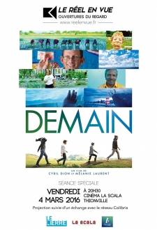 Fervents défenseurs de la nature, Cyril Dion et Mélanie Laurent voyagent avec leur équipe à travers une dizaine de pays et enquêtent pour comprendre quelles sont les solutions qui pourraient permettre de tenter d’éviter les crises écologiques, économiques et sociales qui menacent l’humanité. Au cours de leur périple, ils rencontrent de nouveaux acteurs de l’agriculture, de l’énergie, de l’économie, de la démocratie et de l’éducation qui œuvrent au moyen d’initiatives nouvelles et positives afin de préserver le monde demain…LA CRITIQUE LORS DE LA SORTIE EN SALLE DU 02/12/2015