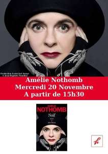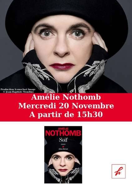 Pour la sortie de son nouveau roman (aux éditions Albin Michel) "Soif", Amélie Nothomb sera à la librairie de 15h30 à 19h.
