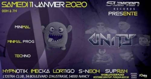 ?? Slaken Records vous propose sa première soirée " Unity " - une combinaison de 3 styles, Minimal Prog, Minimal et Techno.