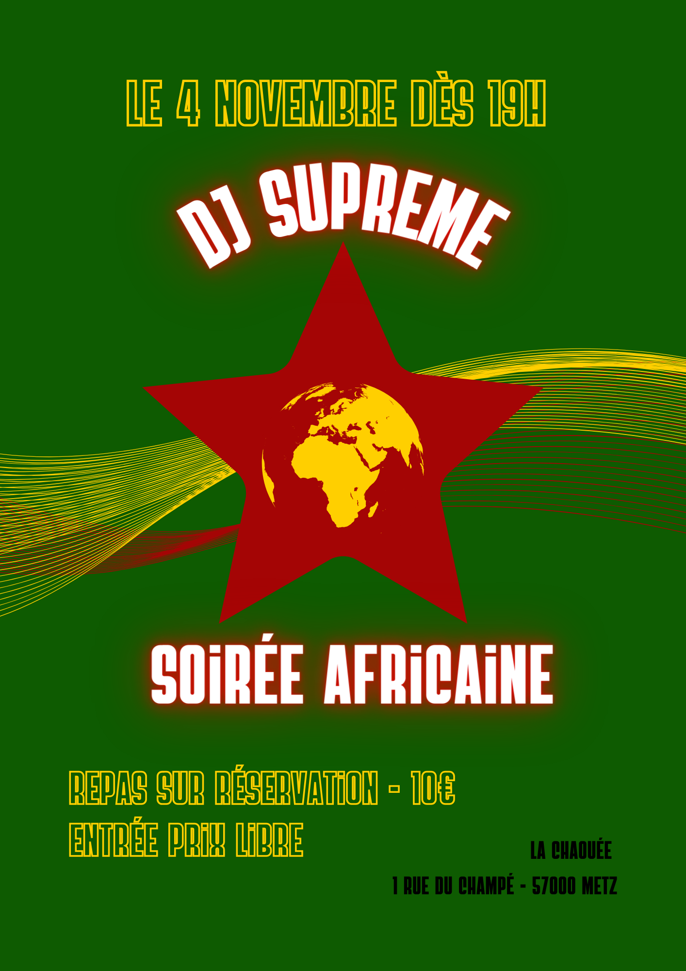 La Chaouée et DJ SUPREM (Dieudo pour les intimes ) vous proposent une soirée à l’honneur de l’Afrique !