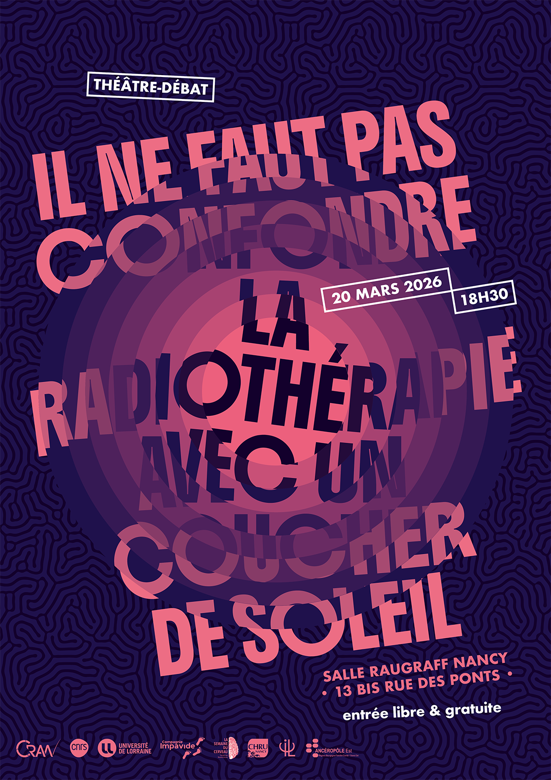 Dans le cadre de la 28ème édition de la semaine du cerveau, le laboratoire CRAN exposera ses travaux de recherche sur les tumeurs cérébrales au grand public sous la forme d’un théâtre-débat joué par la compagnie Impavide. Venez assister à cette pièce co-écrite par Joël Daouk, ingénieur de recherche au laboratoire et Amélie Aubertin, comédienne et metteuse en scène. La première représentation aura lieu vendredi 20 mars 2026 à 18h30 à la salle Raugraff au 13 bis rue des Ponts à Nancy.
