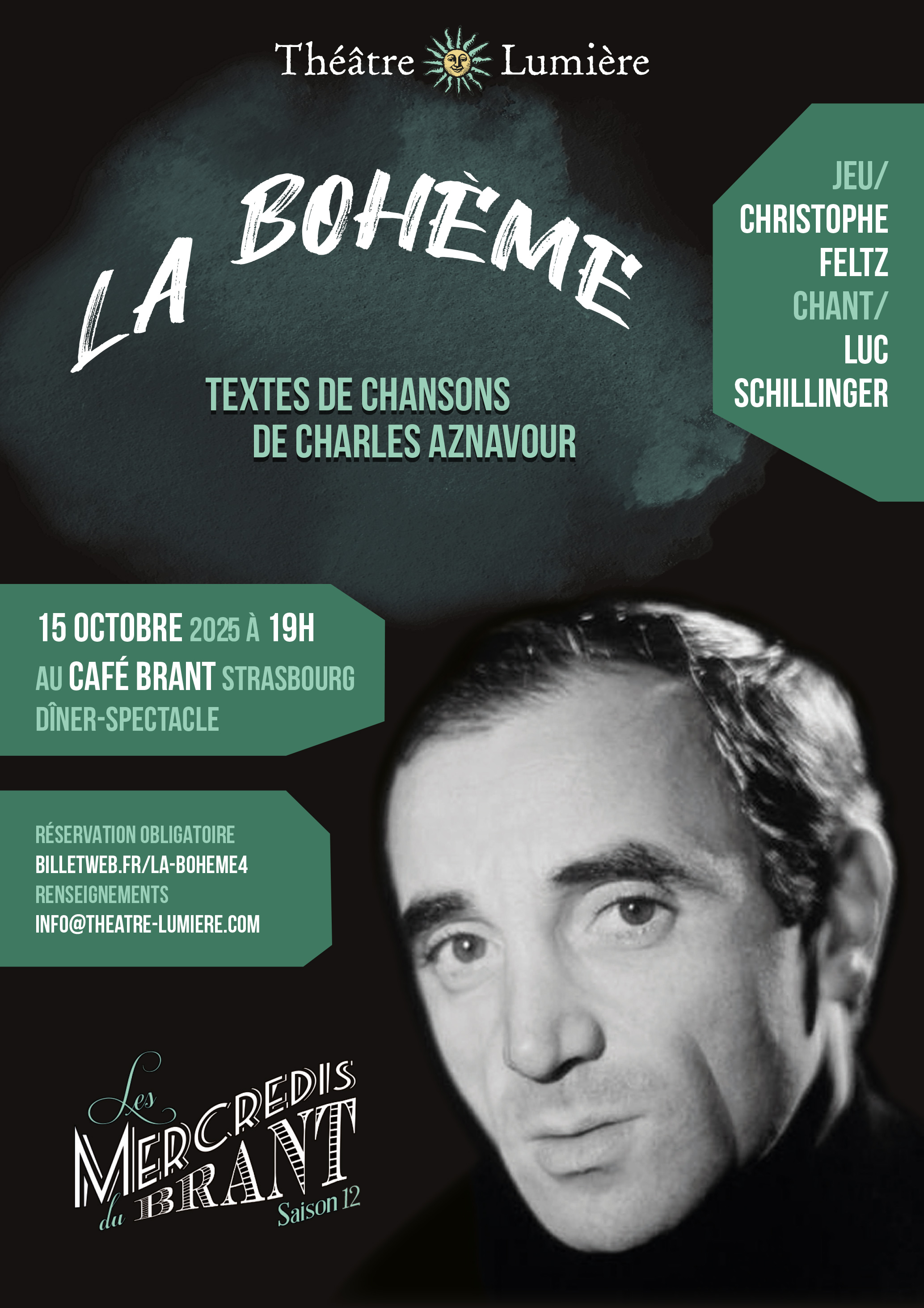 Spectacle de théâtre musical « La Bohème » d’après Charles Aznavour avec Christophe Feltz (jeu) et Luc Schillinger (guitare & chant) le mercredi 15