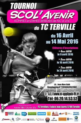 Le TC Terville (Tennis Club) organise le tournoi Scol’Avenir du 16 avril au 14 mai 2016.