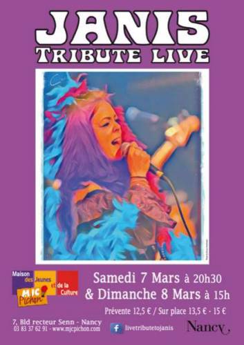 Vous avez aimé Janis Joplin, vous l’aimez encore, alors suivez la page du « Live tribute to Janis » et venez nous découvrir en concert.