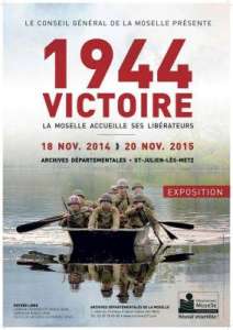 Le Conseil Général de la Moselle présente "1944, victoire ! La Moselle accueille ses libérateurs", une exposition sur la Libération du département de la Moselle. Elle est à découvrir aux Archives départementales à Saint-Julien-lès-Metz du 18 novembre 2014 au 20 novembre 2015 et au Centre des Archives Industrielles et Techniques de Saint-Avold du 12 janvier au 31 juillet 2015.