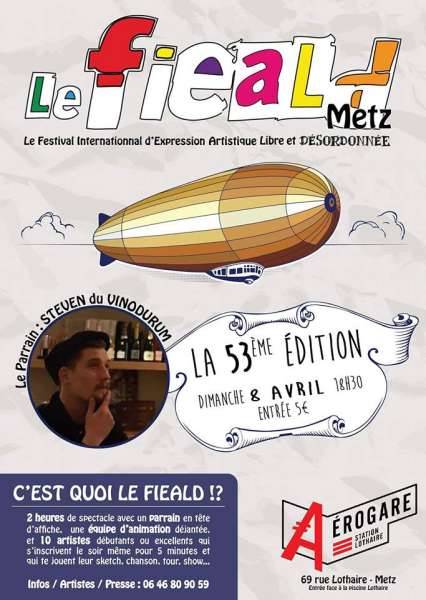 Le FIEALD de Metz vous fera à nouveau découvrir ou redécouvrir des artistes lors de son spectacle vivant de 2 heures et vous offre grâce à Steven notre Parrain du jour, une belle dégustation.Informations :