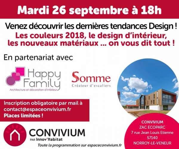 Venez découvrir les dernières tendances DESIGN, les tendances à venir pour 2018 : couleurs, matériaux ... On vous dit tout ! Avec la participation de Catherine Laur, Architecte d’intérieur Happy Family DECO & de la société Somme Créateur d’escaliers !