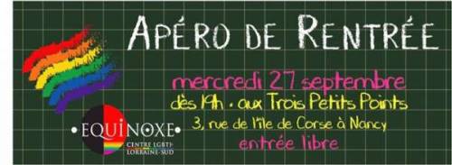 Comme chaque année, le Centre LGBTI Équinoxe vous propose un apéro de rentrée, ouvert à toutes les personnes LGBTI+ et leurs ami·e·s.