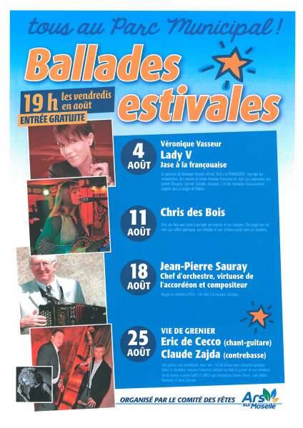 Le Comité des fêtes d’Ars-sur-Moselle, près de Metz, vous invite à écouter les ballades estivales tous les vendredis au parc municipal.