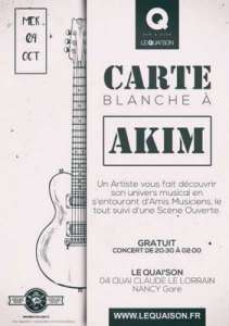 Le Quai’Son donne ’Carte Blanche’ à AKIM qui vous fera découvrir son univers musical en compagnie d’amis musiciens.