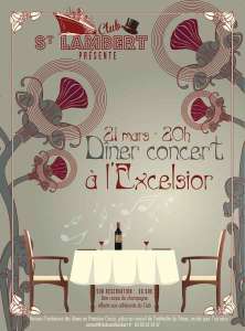 Le Club Saint-Lambert, en partenariat avec l’Excelsior à Nancy vous propose de vous transporter à la Belle Époque, le temps d’un Dîner-concert. Revivez les dîners en Première Classe grâce à l’orchestre du Titanic recomposé spécialement pour l’occasion.