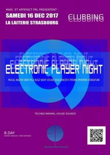 A cette occasion, Electronic Player records organise le samedi 16 décembre 2017 une soirée « ELECTRONIC PLAYER NIGHT » à la Laiterie de minuit à 5heures.